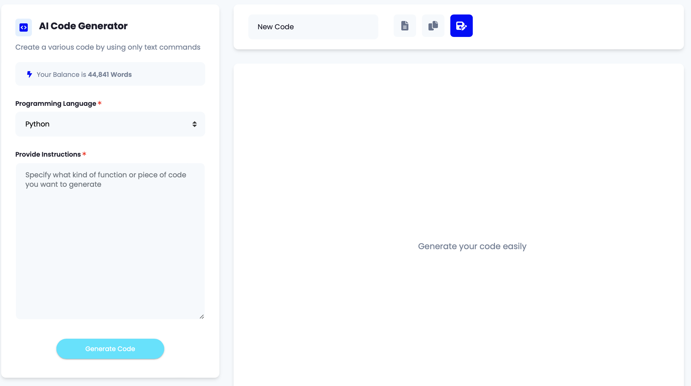 Simply articulate your requirement in straightforward language, and we'll handle the rest. With our support, you are empowered to compose code proficiently in Python, Flutter, PHP, JavaScript, Ruby, among other programming languages, all with remarkable ease.