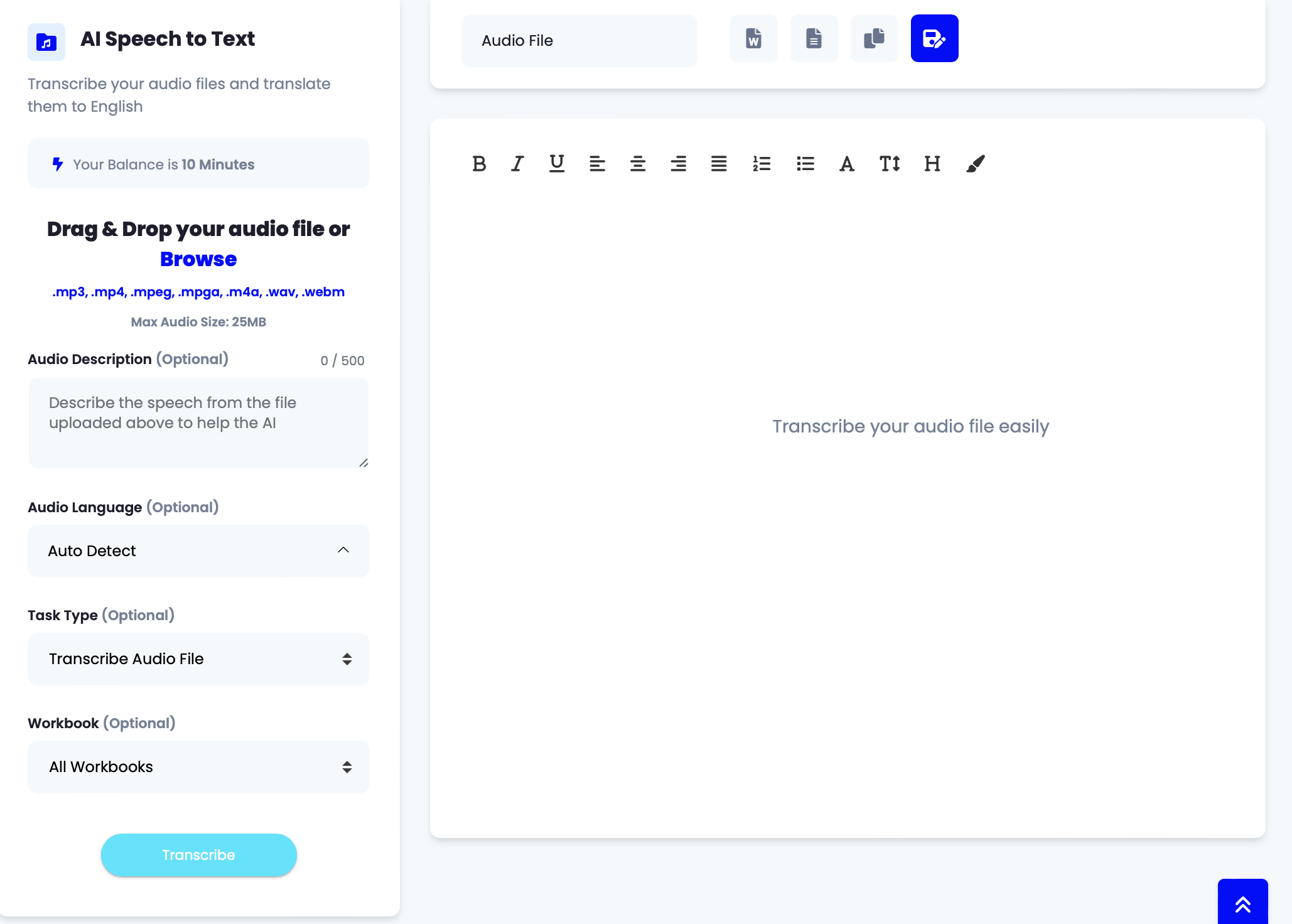 AI Speech to Text Transcribe